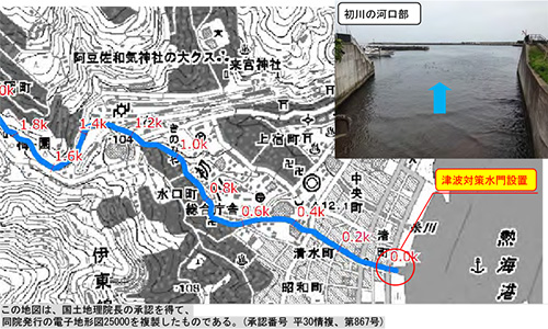 津波対策水門の設置箇所(出典:初川水系河川整備計画)