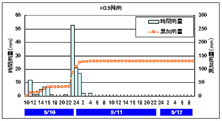 平成3年9月洪水ハイエトグラフ(稲取観測所)