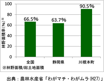 林野面積率の比較(出典:大井川水系中流七曲りブロック河川整備計画)